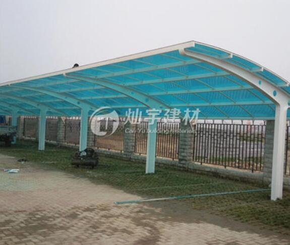 膜结构车棚建筑中常用的膜材料。PTFE膜材料是指在极细的玻璃纤维(3微米)编织成的基布上涂上PTFE(聚四氟乙烯)树脂而形成的复合材料。PVC膜材料是指在聚酯纤维编织的基布上涂上PVC(聚氟乙烯)树脂而形成的复合材料。